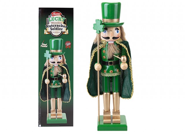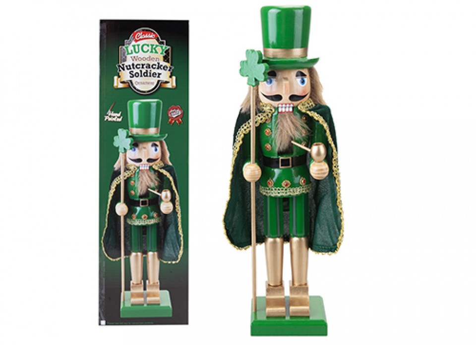 A modern twist on the traditional nutcracker. Christmas ornament in Green and Gold.