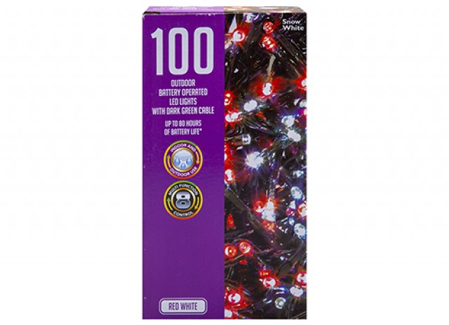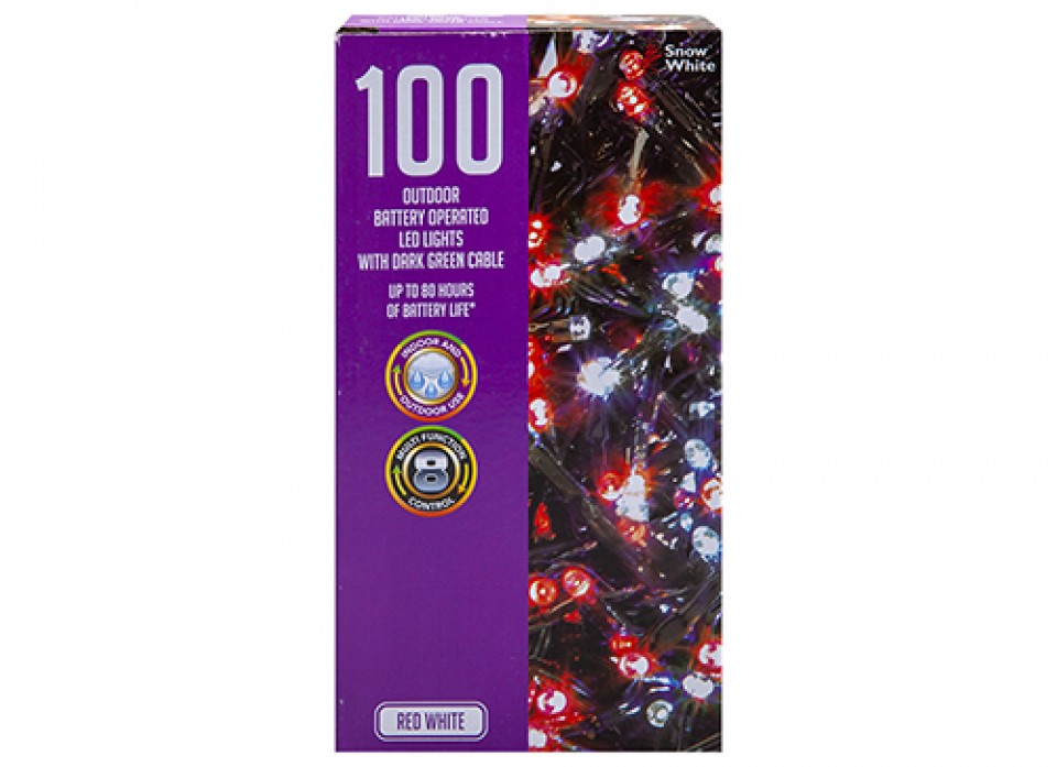 SNOW WHITE 100 LED OUTDOOR BATTERY LIGHTS RED & WHITE
