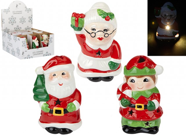 SNOW WHITE LED CERAMIC CHRISTMAS FIGURES 3 ASSORTED