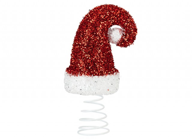 SNOW WHITE SANTA HAT TREE TOPPER DECORATION 20CM