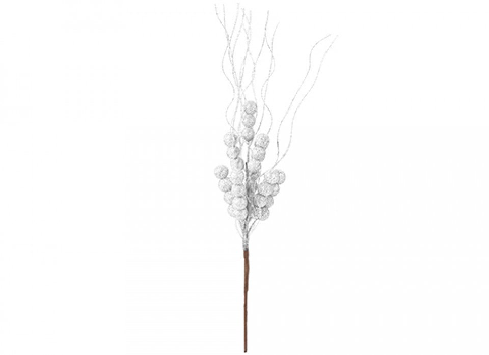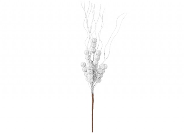 SNOW WHITE GLITTER CHRISTMAS BERRY PICK WHITE 38CM