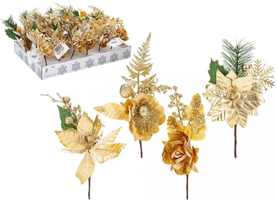 SNOW WHITE LUXURY GOLD CHRISTMAS PICKS 4 ASSORTED