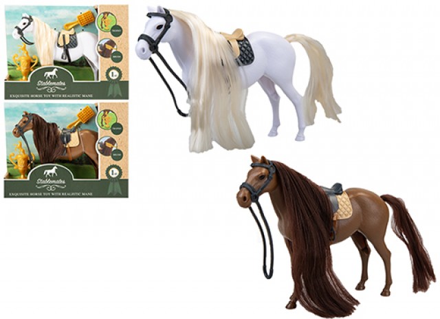 Toy horse with brushable mane and tail.