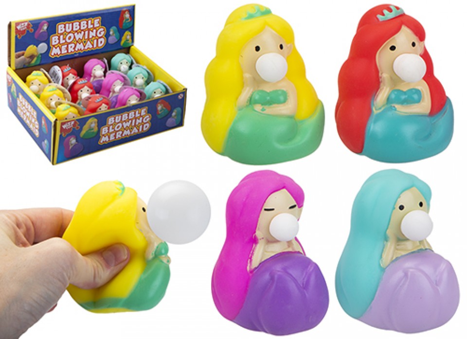 Colourful and popular mermaid heads with bubble blower. Simply squeeze and see her blow bubbles. Children love Mermaids this is perfect for prizes or childrens party bags.