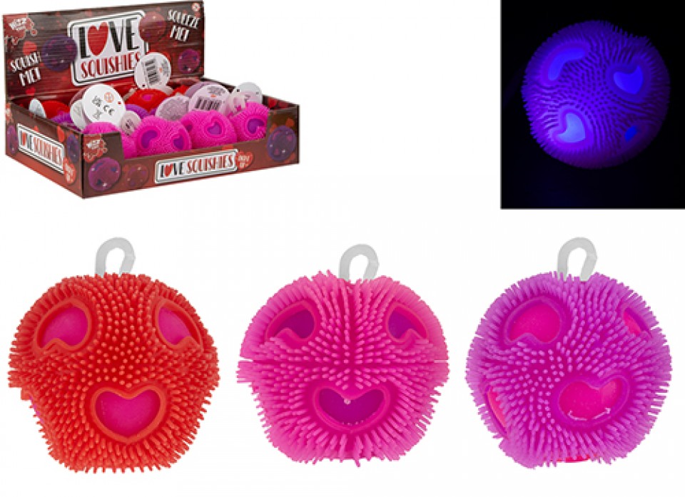 WIZZ TOYS PUFFER LOVE HEART LIGHT UP BALL 7CM 3 ASSORTED