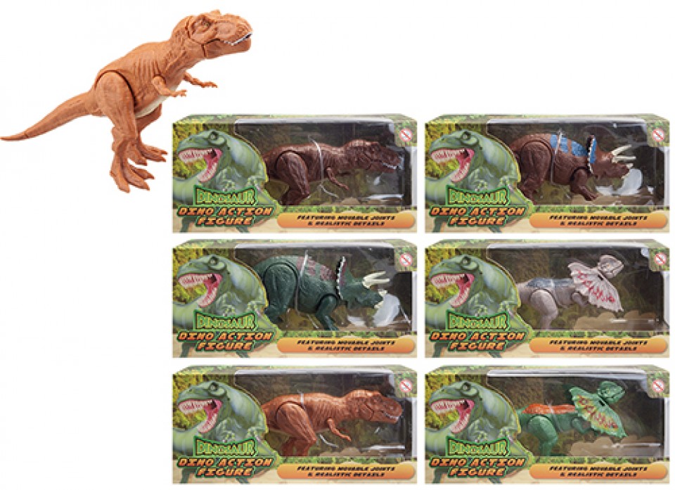 Jointed dinosaur figure with moving head comes in 6 assorted dinosaurs.