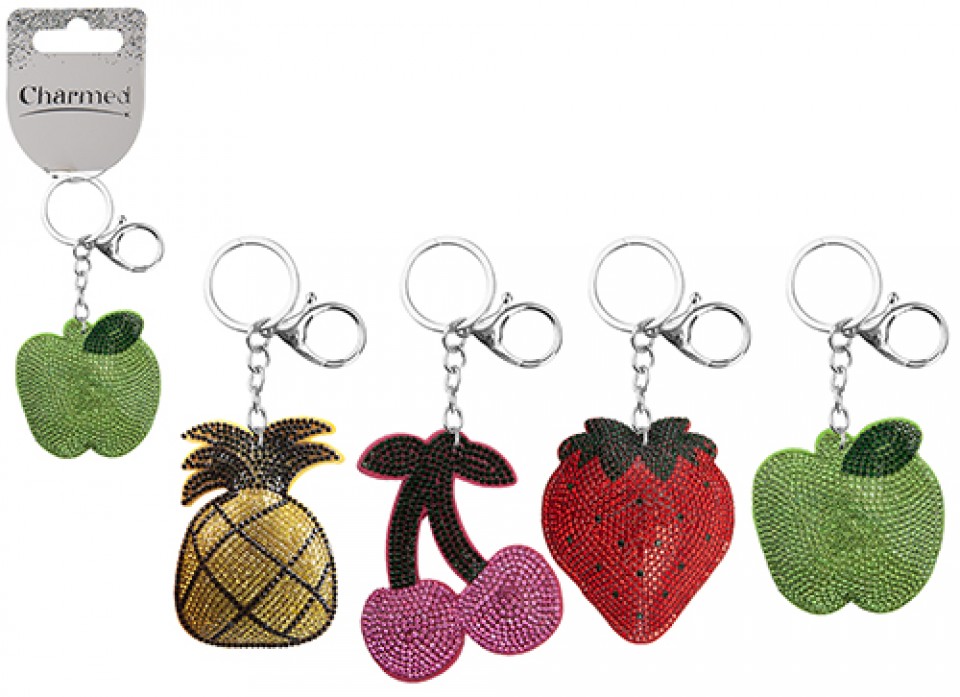 The Diamante Fruit Bling Keychain is a true work of art, boasting stunning fruit-shaped pendants adorned with dazzling diamantes.