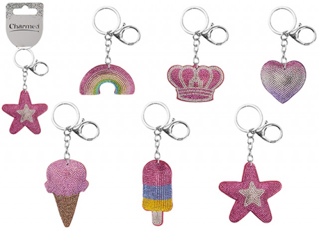 Add sparkle to your accessory range with these diamante bling keychains, supplied in a girly mix of four assorted designs. Perfect for gift shops, fashion retailers and impulse buys, each keychain features eye-catching rhinestone detail, durable fittings and trendy appeal. Ideal wholesale keyrings that attract customers and boost sales year-round.