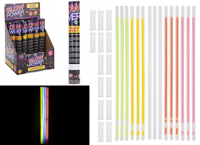 The ever popular glow sticks with connectors. Once activated they will glow for approximately 8 hours.