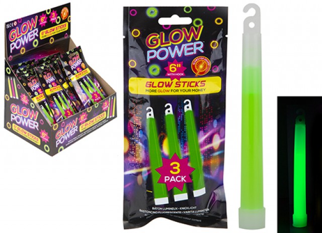 GLOW POWER GLOW STICKS 6" PACK OF 3