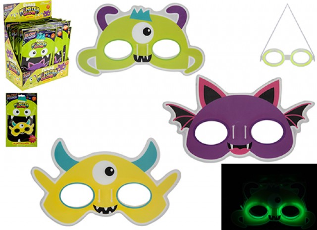 GLOW POWER MONSTER GLOW MASKS 3 ASSORTED