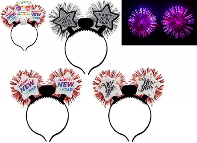 PARTY PARTY LIGHT UP OPTIC HAPPY NEW YEAR TINSEL HEADBAND