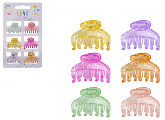 BEAU HAIR ACCESSORIES SMALL GLITTER CLAW HAIR CLIPS 6 PACK