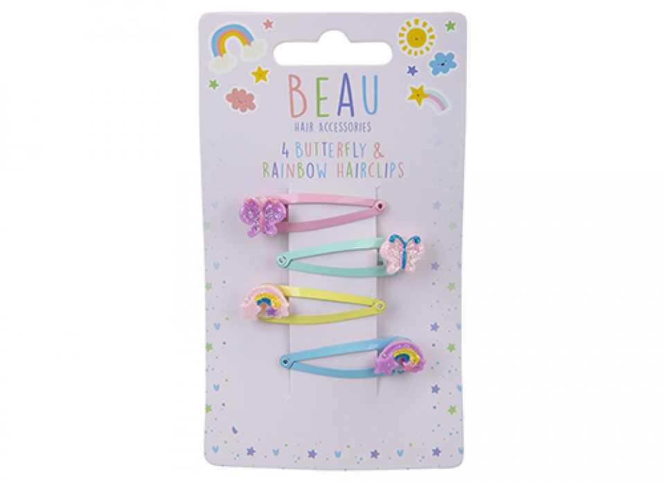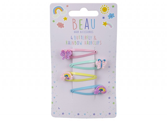BEAU HAIR ACCESSORIES 4 PACK BUTTERFLY & RAINBOW HAIR CLIPS