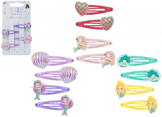 BEAU HAIR ACCESSORIES MERMAID HAIR CLIPS 3 ASSORTED