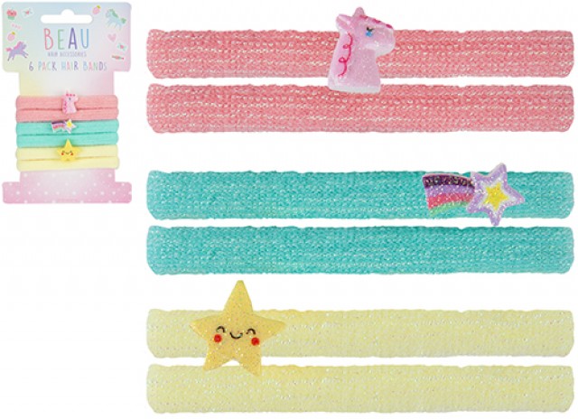 BEAU HAIR ACCESSORIES UNICORN HAIR BANDS PACK OF 6