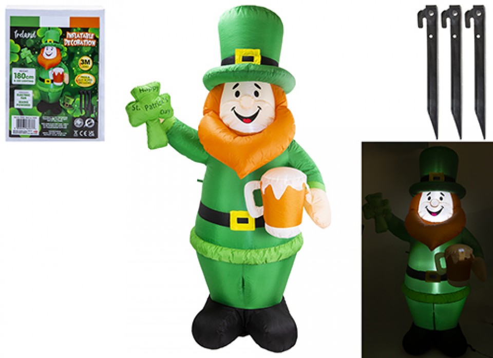Saint Patricks Day inflatable with eye catching LED lights.