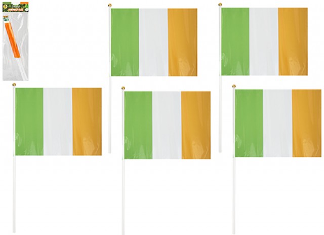 Ireland Flags with Sticks Pack of 5 is perfect for events, celebrations and national promotions. Featuring vibrant Irish tricolour designs, these lightweight handheld flags are ideal for parties, sports occasions and retail resale. Easy to wave and display, they offer excellent value and strong seasonal demand for St Patricks Day and themed events.