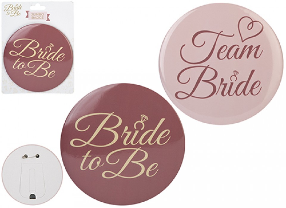 Bride To Be Jumbo Badge with Stand 15cm 2 Assorted is a fun, eye-catching accessory for hen parties and bridal celebrations. Featuring bold designs and a freestanding option, its perfect for photos, table displays and gifting. Ideal for retail resale, this novelty badge adds impact to wedding and party ranges.