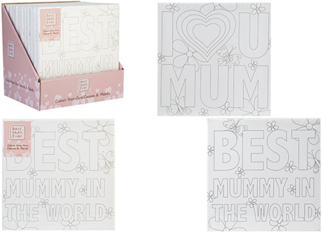 BEST MUM EVER COLOUR YOUR OWN CANVAS WITH PAINTS 2 ASSORTED