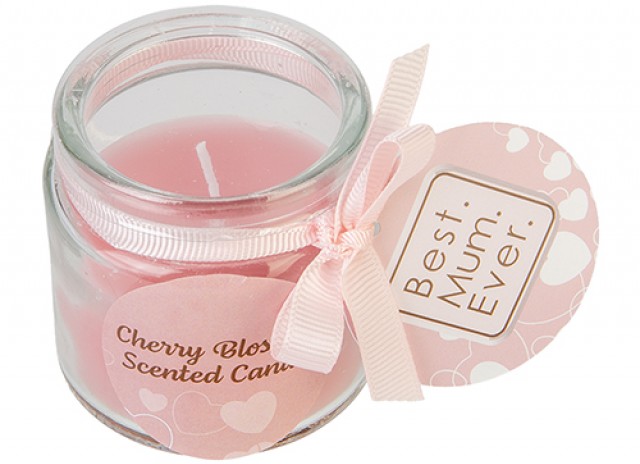 BEST MUM EVER CANDLE JAR WITH BOW - CHERRY BLOSSOM