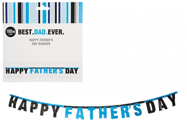 Celebrate Fathers Day in style with this Best Dad Ever banner, measuring 180cm for maximum impact. Ideal for home, retail displays or party decorations, this eye-catching Fathers Day banner is easy to hang and reusable. A must-stock seasonal decoration for retailers looking to boost Fathers Day sales and gifting ranges.