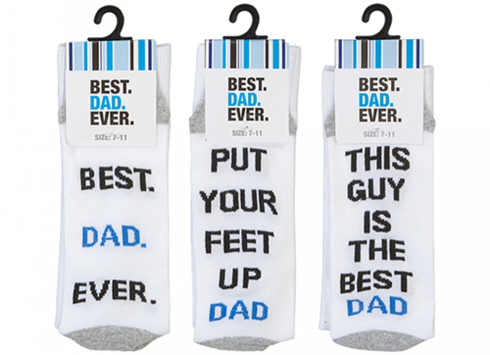 Boost Fathers Day sales with these Best Dad Ever novelty socks, available in three assorted fun designs. Made for comfort and everyday wear, they offer strong gift appeal and vibrant retail presentation. A popular, high-margin product perfect for driving impulse purchases and adding value to seasonal wholesale clothing and gifting ranges.