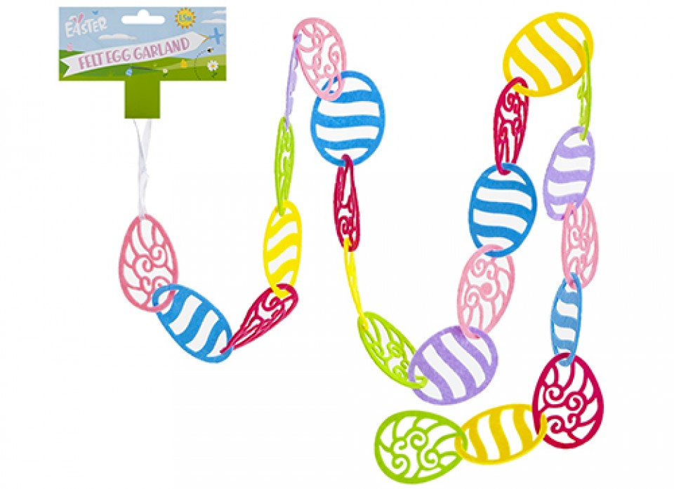 Add seasonal charm to your retail range with this Easter Felt Egg Garland. Measuring 150cm, this colourful decorative garland features soft felt eggs perfect for Easter displays, spring promotions and gifting. Lightweight and easy to hang, it enhances visual merchandising and boosts seasonal sales in-store or online ranges for retailers.