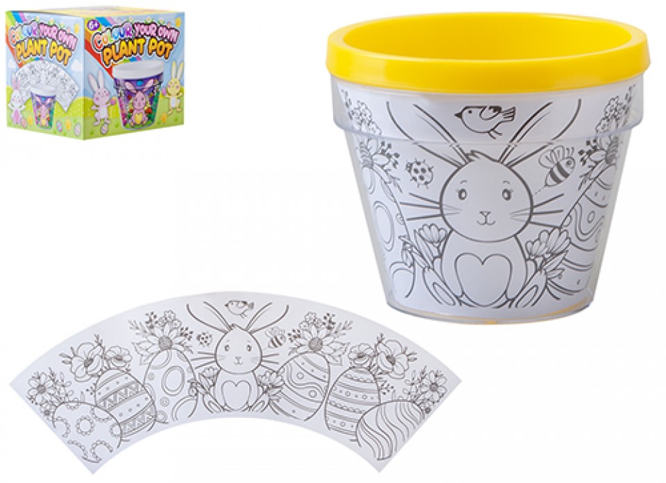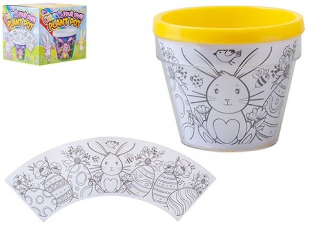Colour your own plant pot in a fun Easter design. Perfect gift to encourage the natural processes of nature and all the benefits that come with gardening and creativity.