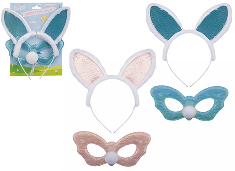 EASTER BUNNY EARS AND MASK SET 2 ASSORTED COLOURS