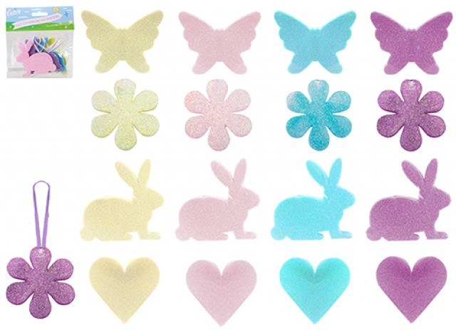 Set of 4 glitter Easter decorations.