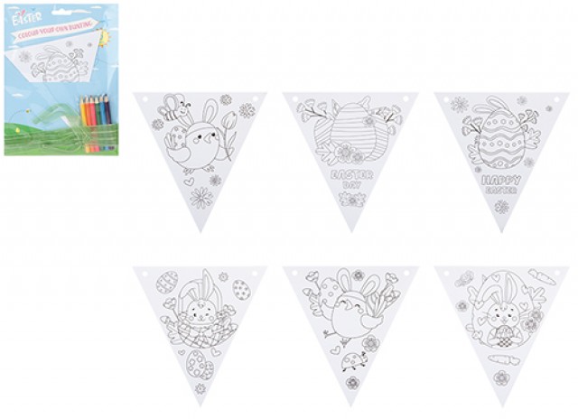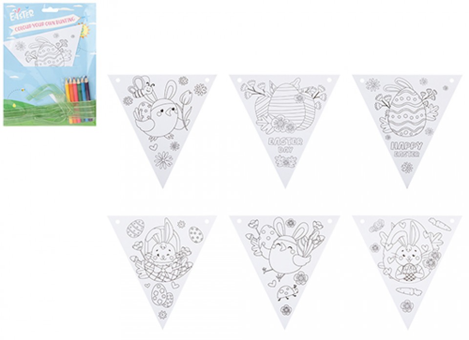 Colour your own Easter bunting includes 6 colouring pencils and ribbon, a delightful addition to your seasonal product lineup.