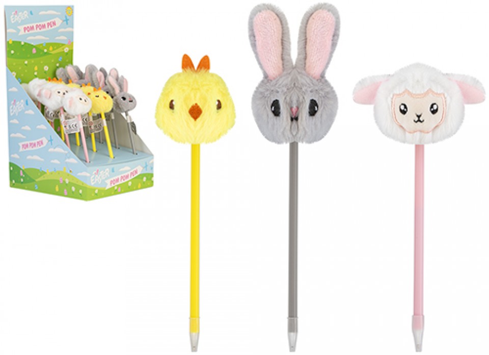 EASTER PLUSH POM POM TOPPED PEN 3 ASSORTED