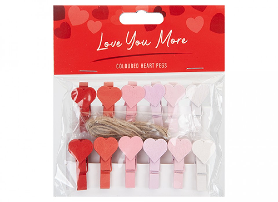 LOVE YOU MORE HEART SHAPED PEGS 12 PACK