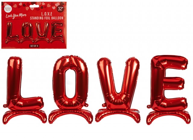 Create a stunning romantic display with the Love You More Set of 4 32" LOVE Standing Balloons. Easy to inflate and freestanding, these bold letter balloons are perfect for Valentine's Day, weddings, and events. A high-impact decor piece ideal for party ranges, gift shops, and seasonal promotions.