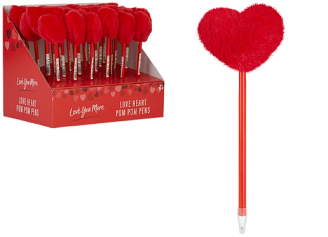 Add a touch of romance to your stationery range with the Love You More Red Heart Pom Pom Topped Pen. Featuring a fluffy red heart pom pom and smooth black ink, it's perfect for Valentine's Day, gifting, and novelty displays-a charming impulse buy with heartfelt appeal.