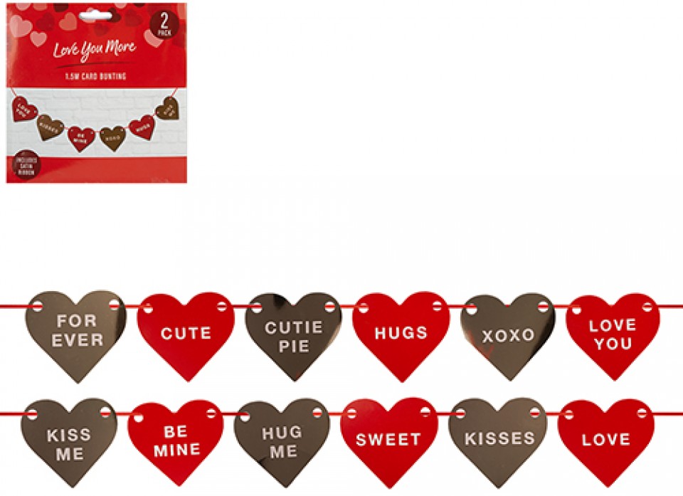 LOVE YOU MORE LOVE HEART CARD BUNTING WITH MESSAGE TWIN PACK