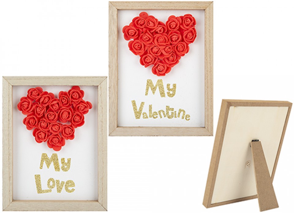 LOVE YOU MORE LOVE HEART FRAMED FOAM ROSES 2 ASSORTED