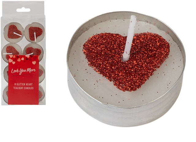 LOVE YOU MORE GLITTER HEART TEALIGHT CANDLES