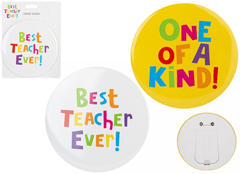 Celebrate appreciation gifting with this Best Teacher Ever Jumbo Badge, measuring 15cm. Featuring bold, eye-catching design, it is perfect for end-of-term gifts, school events and classroom rewards. Ideal for retail displays and impulse purchases, this novelty badge offers strong visual appeal and excellent value for wholesale buyers.