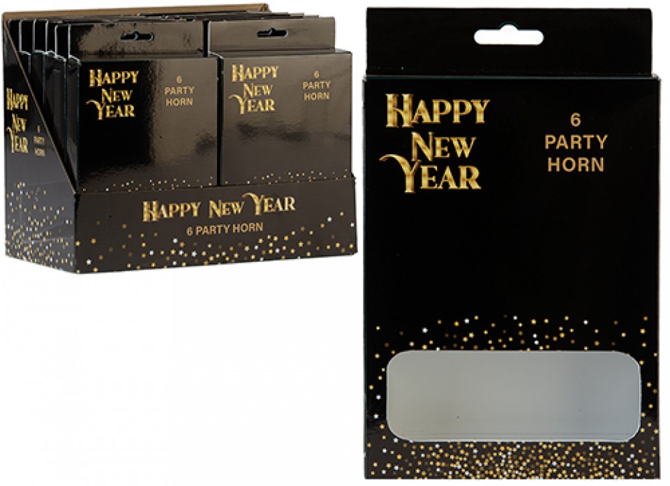 HAPPY NEW YEAR PARTY HORNS 6 PACK