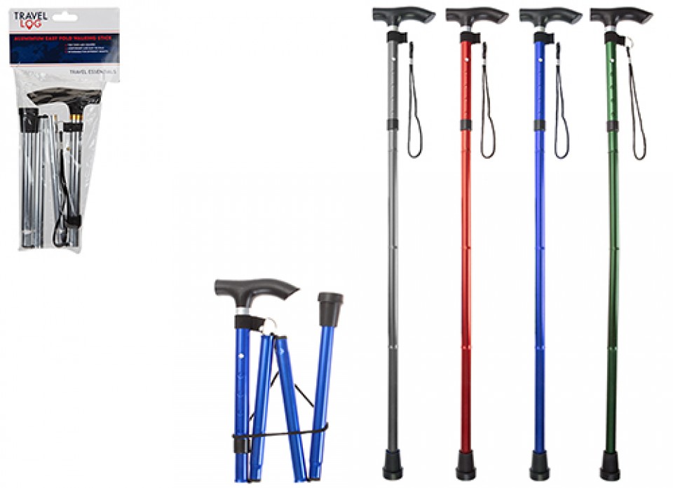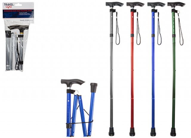 TRAVEL LOG FOLDING ALUMINIUM WALKING STICK 4 ASSORTED