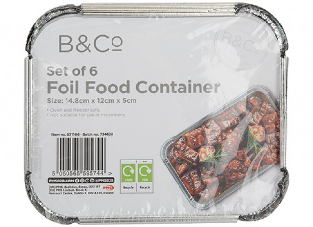 B&CO MEDIUM FOIL FOOD CONTAINERS PACK OF 6