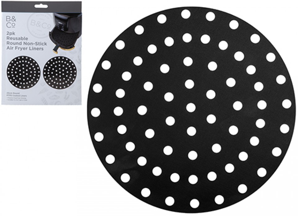 B&CO AIR FRYER 2 PACK REUSABLE NON STICK ROUND LINERS