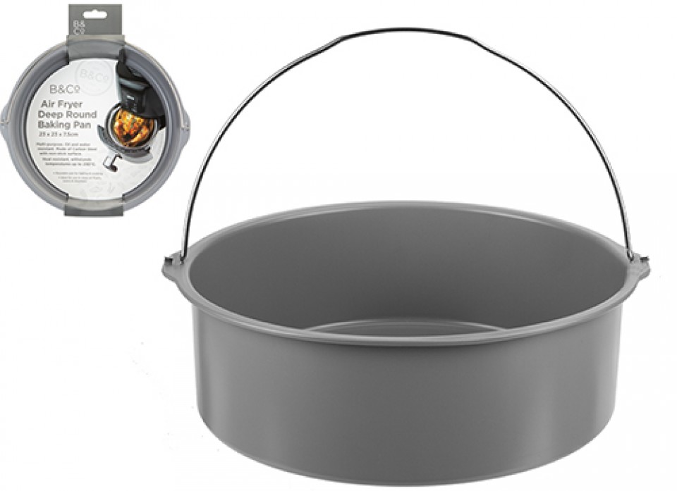 B&CO AIR FRYER DEEP ROUND BAKING PAN 23CM X 23CM X 7.5CM