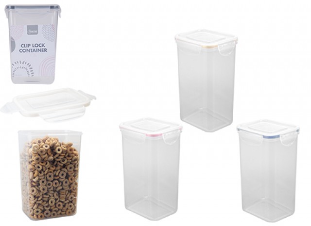HOME CONNECTION SQUARE CLIP LOCK CONTAINERS 1.3L 3 COLOURS