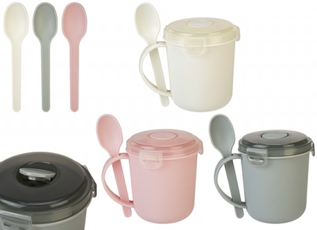 HOME CONNECTIONS MICROWAVE SOUP MUG WITH SPOON