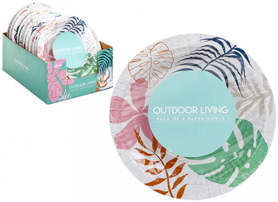 Botanical design paper bowls. Perfect for outdoor dining or parties. Strong and durable.