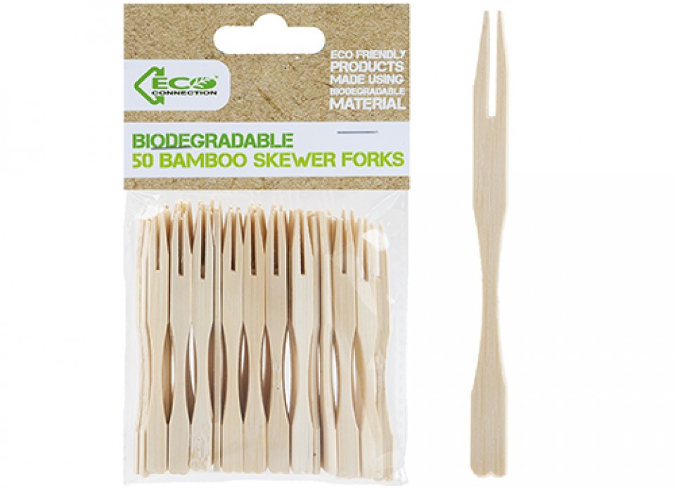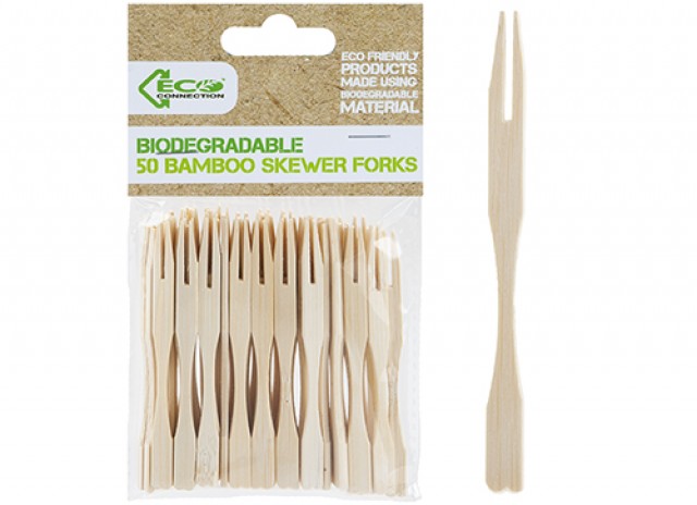 B&CO ECO CONNECTION BAMBOO SKEWER FORKS 50 PACK 9CM X 3MM