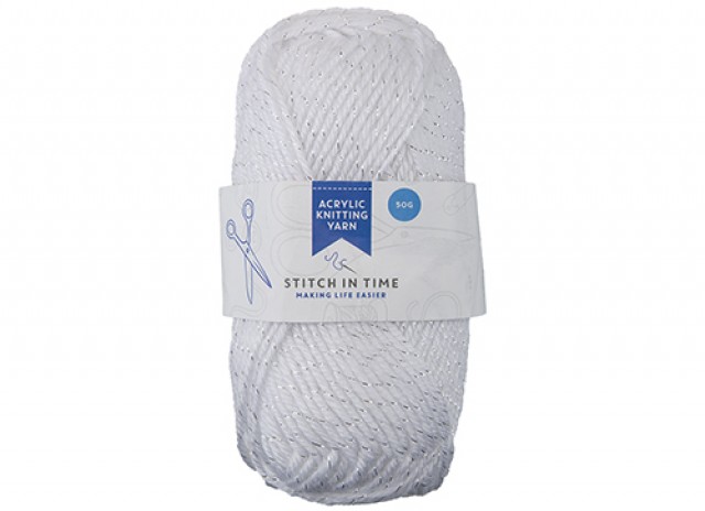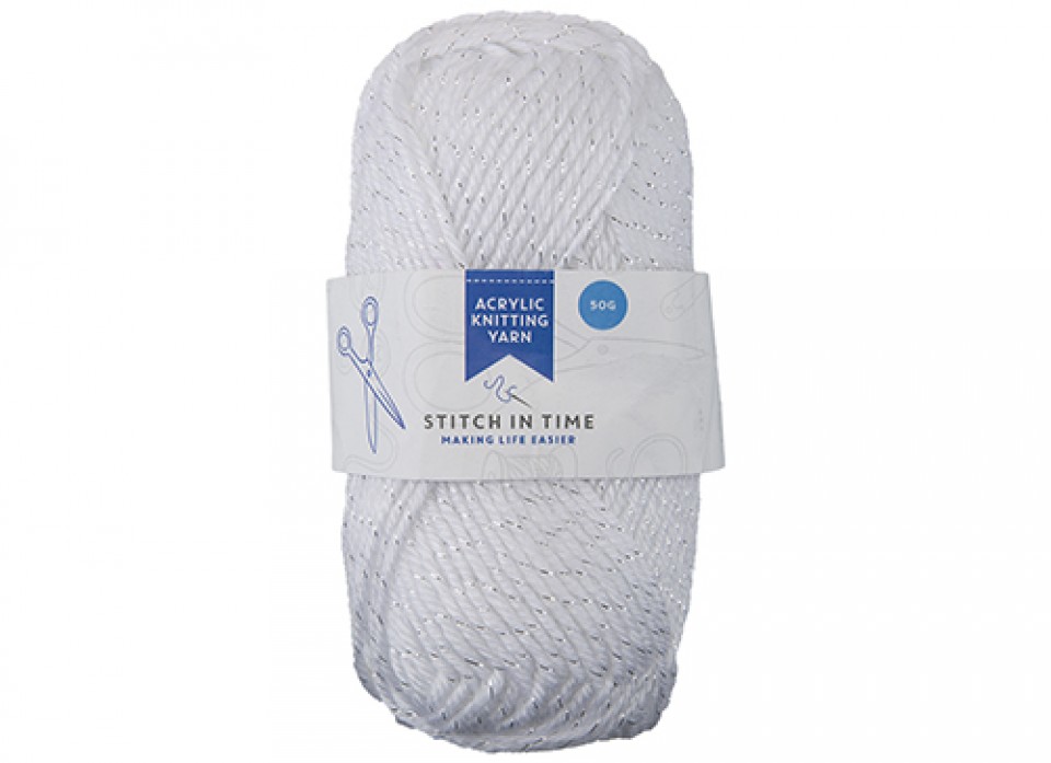 STITCH IN TIME KNITTING YARN 50G-SPARKLE WHITE DOUBLE KNIT